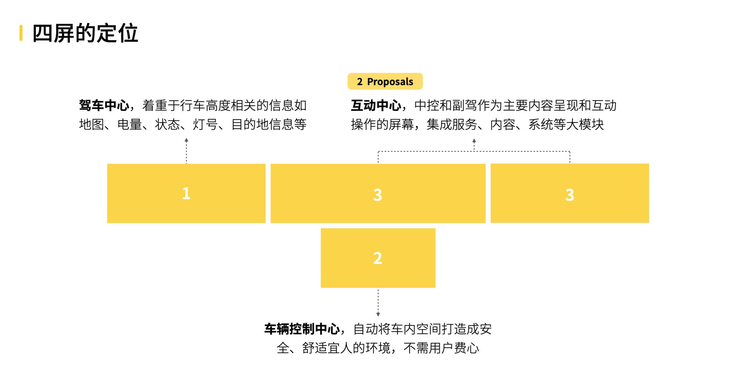 When you start to examine exactly what is going to be displayed on screen, you see functionally distinct systems: dashboard (speed, gas, car light information, etc.), center system (settings, connectivity, notifications, etc.), entertainment system (media, games, etc.) and hardware control system (air-conditioning, seat heat, etc.). For these systems to work and more importantly, be understood by users, the design has to be precise, information has to be structured. Especially when the target user group is likely to have prior driving experiences and are accustomed to the way things were. A complete innovation on a mixture of systems, or interaction style that deviates too far from smartphone interaction might cause a negative effect on the purchase decision. This was the initial assessment we had before getting into the actual design. From another realistic business perspective, you don’t want to go all-in with the resources at the risk of not being fully accepted by the market, it is wise to identify your pillar services that match market needs first, then release them with a solid plan. Consumers need time to adjust their expectations, making the transition period smooth is part of the responsibilities for any enterprise when introducing a new product to the market. So, a short answer to the opening question is: you don’t shove all the functions and services into a car at once.
